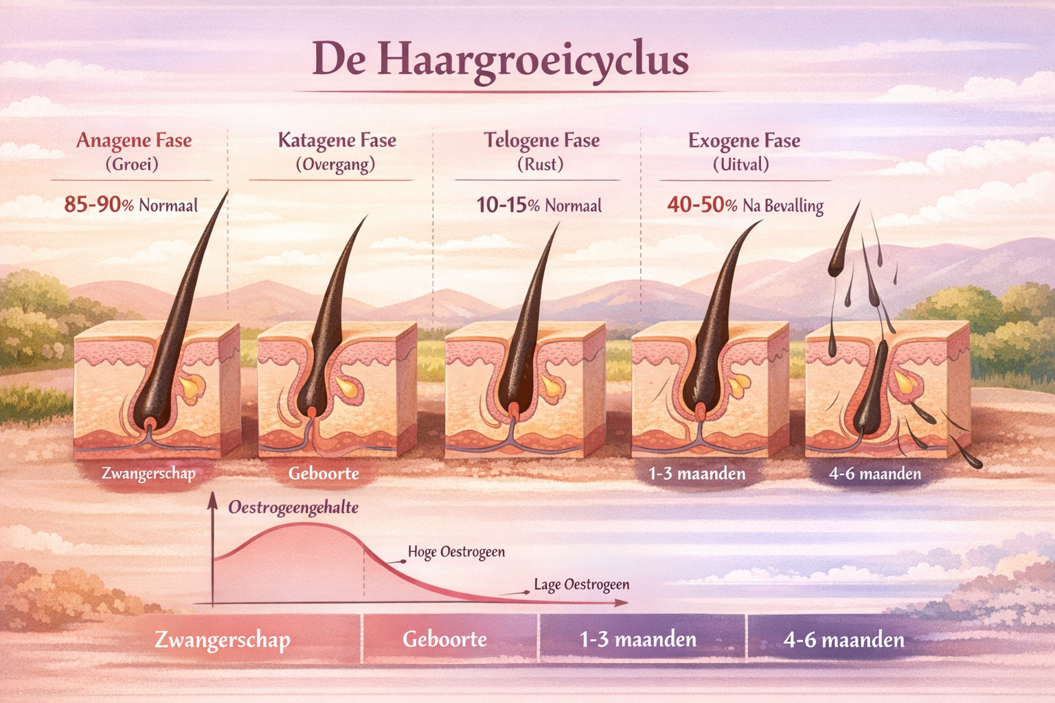 Om te begrijpen waarom haaruitval na zwangerschap gebeurt, is het handig om de haarcyclus te kennen: